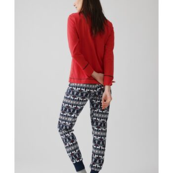 Χειμερινή Χριστουγεννιάτικη πιζάμα από 100% βαμβακερό ύφασμα, υψηλής ποιότητας. Το σετ περιλαμβάνει μπλούζα μακρυμάνικη με στρογγυλή λαιμόκοψη, χριστουγεννιάτικο τύπωμα στο στήθος και παντελόνι τυπωμένο all over, με μπάσκες στα τελειώματα.Για πιο ταιριαστό αποτέλεσμα, συνδυάστε το με την ίδια ανδρική πυζάμα.