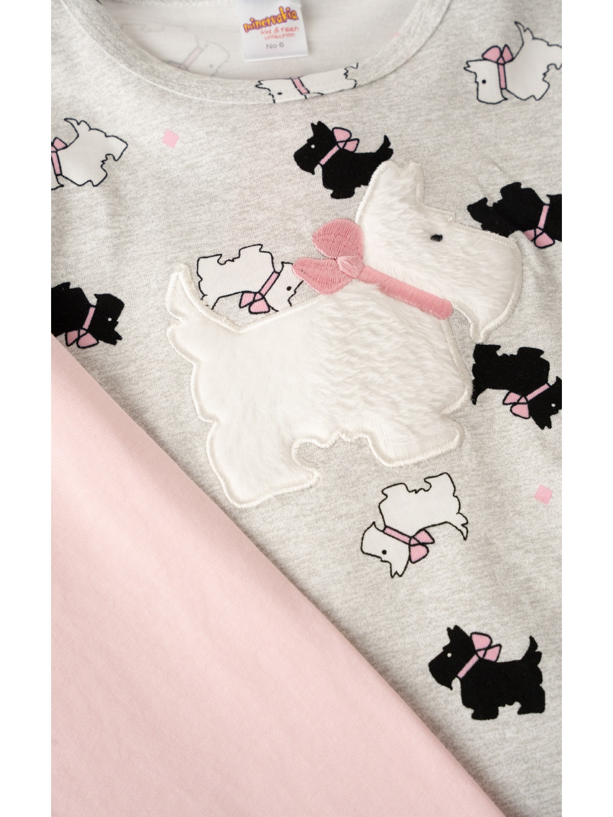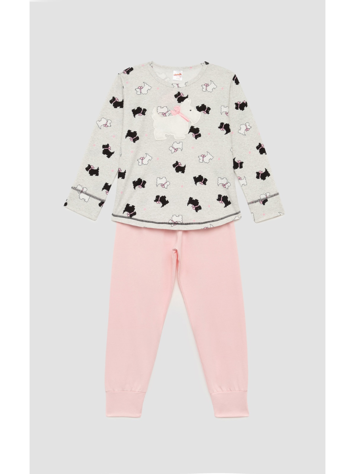 Παιδική χειμερινή πυζάμα, από 100% βαμβάκι υψηλής ποιότητας. Το σετ περιλαμβάνει μπλούζα με κέντημα στο στήθος και παντελόνι με μπάσκες στα τελειώματα.